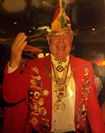 Der mit glitzernden Preziosen bestückte, massgeschneiderte Frack ist mit über 30 handverlesenen Orden geschmückt, alles glänzende Stücke närrischer Provenienz. Bei dem, was da bei Zwicker zu sehen war und nun im „dornroschen“ zu begutachten ist, handelt es sich um einen „0riginalen Elferratsfrack der Elefanten Aktien-Gesellschaft“, wie Wolfgang Rolle versichert, einen Elferratsfrack der sogenannten EAG, .