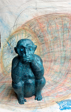 Zu den Ausstellenden gehört Johannes Dörflinger, der, wie man hört, mit einem geheimnisumwitterten Affen (Bild) zu Gange sein wird. Umwittert ist im Übrigen die gesamte Veranstaltung im Bürgersaal. Die Räumlichkeiten des Bürgersaals sollen, wie man hört, für diese Ausstellung verdunkelt und mit punktuell aufscheinenden Elementen bestückt werden, die die Kunstwerke in ein jeweils besonders gutes Licht rücken.