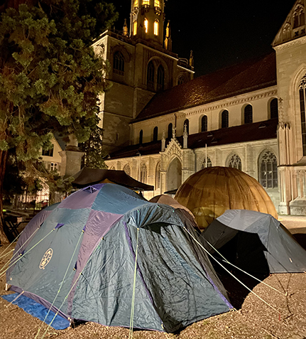 Konstanz (gro) „Unsere Liebe Frau“ strahlt zur Zeit trotz gelegentlicher Regenschauer fast den ganzen Tag. Denn rings um die Mariensäule auf der Südseite der ehemaligen Bischofskirche ist der sonst sehr ruhige Platz in aussergewöhnliche Bewegung geraten. Outdoor-Zelte stehen da seit gestern Abend, am Gatter vor der Mariensäule trocknen Hosen. Ein Kiosk mit Wasseranschlüssen, ein textiles Iglu und andere „fliegende“ Baulichkeiten kommen hinzu. Hunde, dorthin aus der Altstadtgegend gerne ausgeführt, freuen sich sehr, die Frauen und Herrlichkeiten der Vierbeiner sind vor allem neugierig, Katzen halten sich im Hintergrund. … weiterlesen \"\"