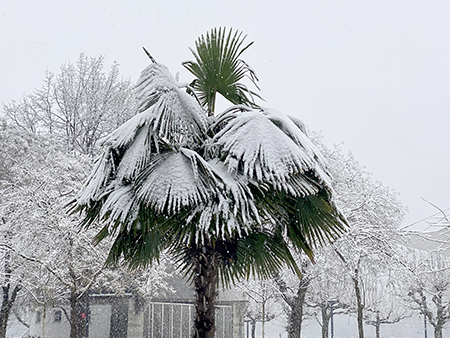 Konstanz (gro) Frisch gefallener Schnee kann verzaubern. Im Konstanzer Stadtgarten hat er, wenn nicht alles täuscht, eine chinesische Hanfpalme mit eiskaltem Weissgewebe überzogen, und das, ohne ihren auffallend aufrechten Charme zu mindern. Schnee macht dieser Palme, einer Baumart, die uns an südliche Gefilde erinnert, offensichtlich keinerlei Probleme. Und tatsächlich sind diese Bäume, so mittelmeerisch sie uns auch vorkommen, sogar im Himalaya zu Hause, wo sie bis in einer Höhe von 2400 Metern gedeihen. … weiterlesen \"\"