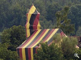 Konstanz-Oberdorf (gro) Nach der Kutsche nun die Kapelle: Wieder ist man einem Konstanzer Kleinod mit Gas auf die Pelle gerückt, genauer: dem Ungeziefer, das sich innerhalb des kostbaren Stücks breit gemacht hatte. Die Heilig-Kreuz-Kapelle in Oberdorf war deswegen eine knappe Woche lang in straff gezogene, schwarz-rot-goldene Planen gewickelt. Rings um das Bauwerk sicherte ein Zaun vor unzulässiger Annäherung ab. Am 28. August werde die Sanierung mit einem Fest abgeschlossen, sagte Dingelsdorfs Orstvorsteher Heinrich Fuchs.